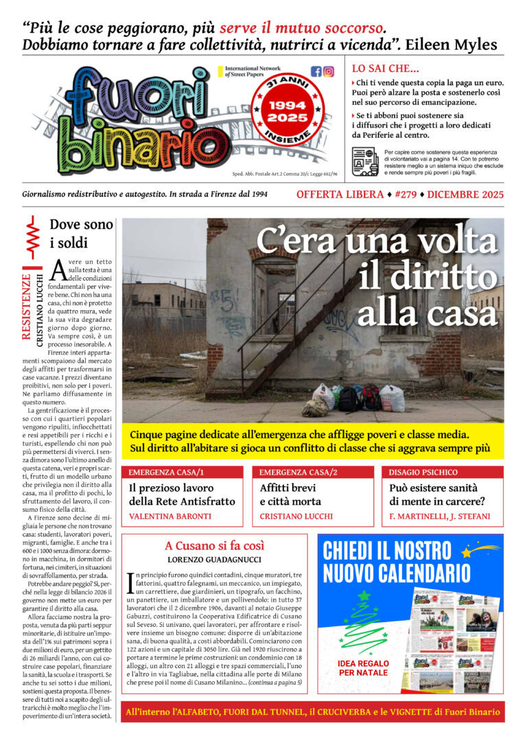 | Scopri il giornale distribuito in strada dai senza dimora fiorentini | Dalla parte dei più fragili, sempre di Cristiano Lucchi | Leggi tutti i numeri arretrati in pdf L’archivio di Fuori Binario |