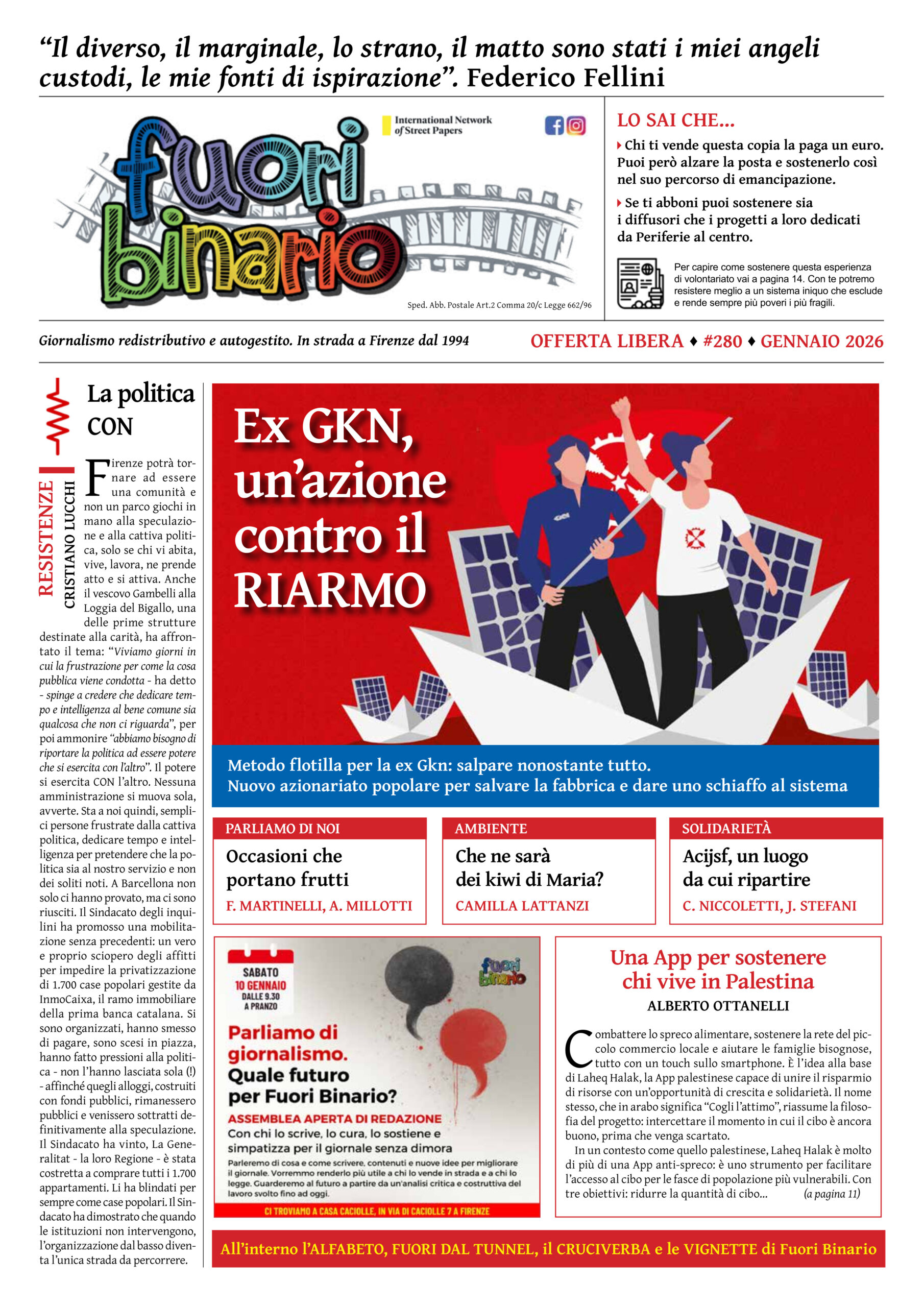 | Scopri il giornale distribuito in strada dai senza dimora fiorentini | Dalla parte dei più fragili, sempre di Cristiano Lucchi | Leggi tutti i numeri arretrati in pdf L’archivio di Fuori Binario |
