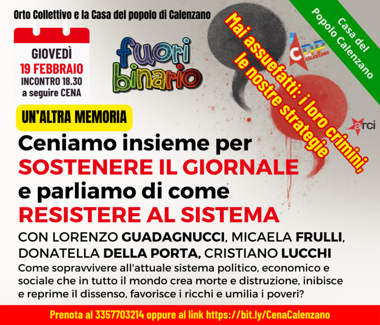 19 febbraio, a cena per Fuori Binario e incontro su “Un’altra memoria” con Orto Collettivo e CdP Calenzano